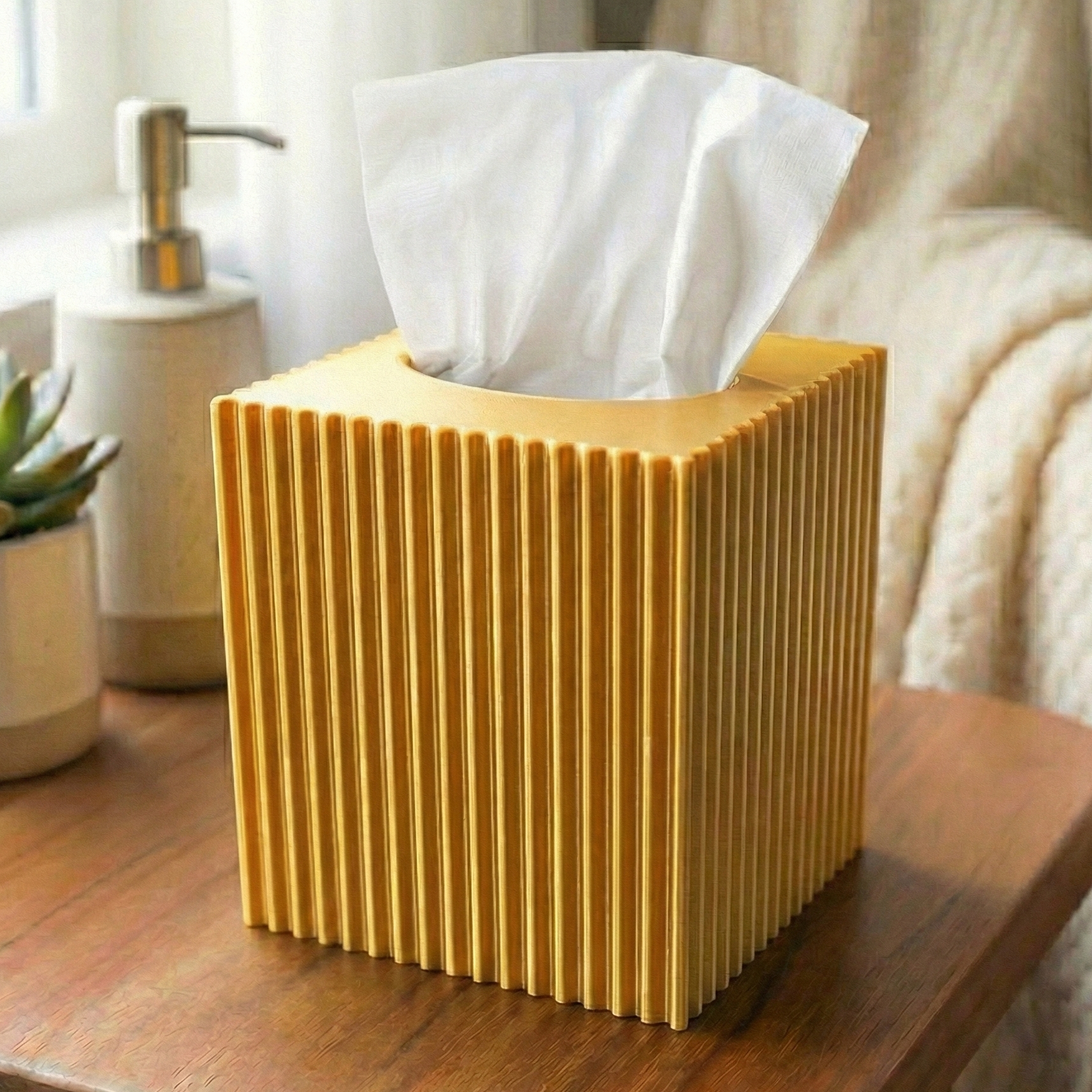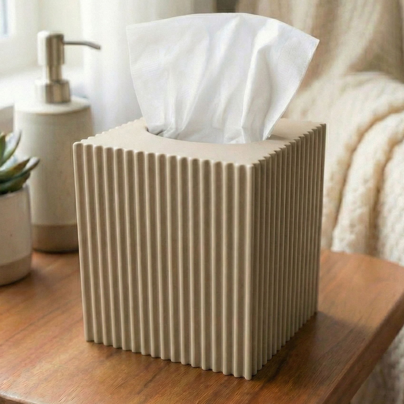 Modern Ribbed Square Tissue Box Cover – 3D Printed Matte PLA
